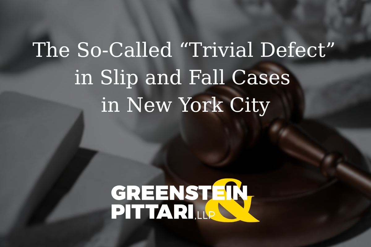 The So-Called “Trivial Defect” in Slip and Fall Cases in New York City Greenstein & Pittari, LLP | NYC Slip and Fall Lawyers Serving Manhattan, Brooklyn, Queens, The Bronx, and Staten Island If you were seriously injured in a slip and fall accident in New York City, you deserve to be taken seriously. Unfortunately, property ... Read More