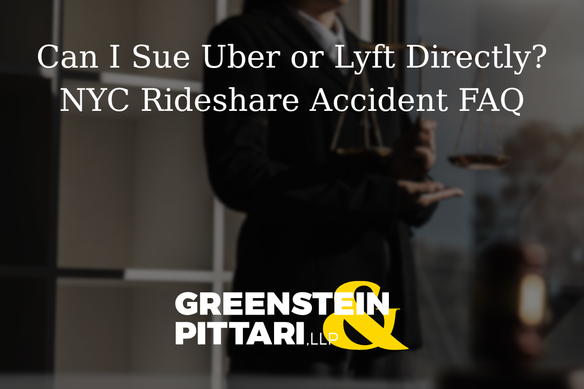 Greenstein & Pittari, LLP | New York City Rideshare Accident Lawyers If you were hurt in an Uber or Lyft accident in New York City, one of the first questions you may ask is simple: Can I sue Uber or Lyft directly? The answer is sometimes, but not usually, in the way people expect. In many NYC rideshare ... Read More
